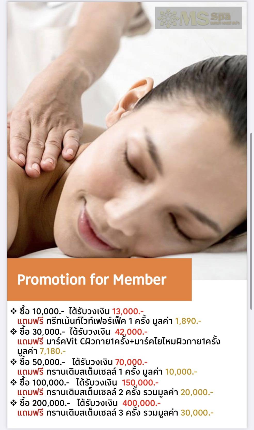 อาบน้ำแร่, นวดครีมวิตามินเข้มข้ม, สครับผิวกาย, เคลือบมุกผิวกาย, มาส์กทองคำ, นวดวิตามินเข้มข้ม*, ทาครีมกันแดด